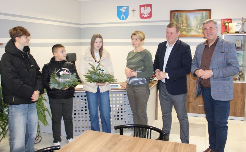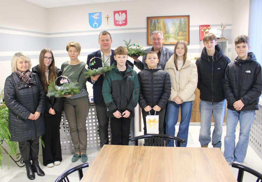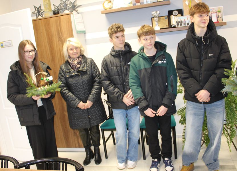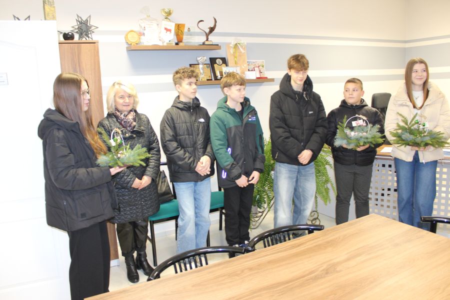 16 grudnia 2025 r. przedstawiciele Młodzieżowej Rady Gminy Wyszki wspólnie z opiekunką Panią Barbarą Ryszt odwiedzili Wójta Gminy Wyszki - Mariusza Korzeniewskiego, Sektetarza - Tadeusza Wielanowskiego oraz Skarbnik Teresę Falkowską. Złożyli życzenia z okazji Świąt Bożego Narodzenia oraz Nowego Roku i wręczyli własnoręcznie wykonane stroiki.