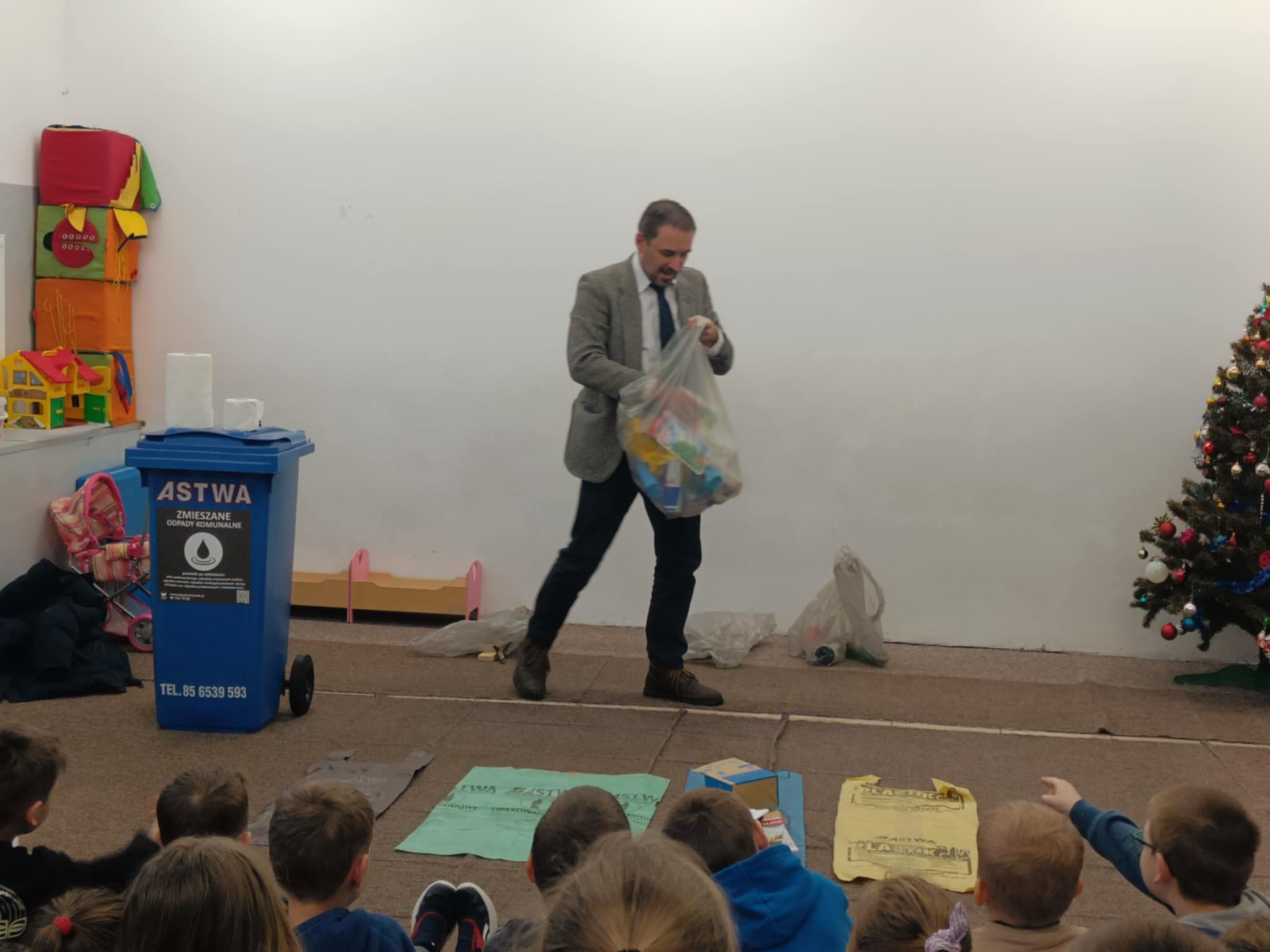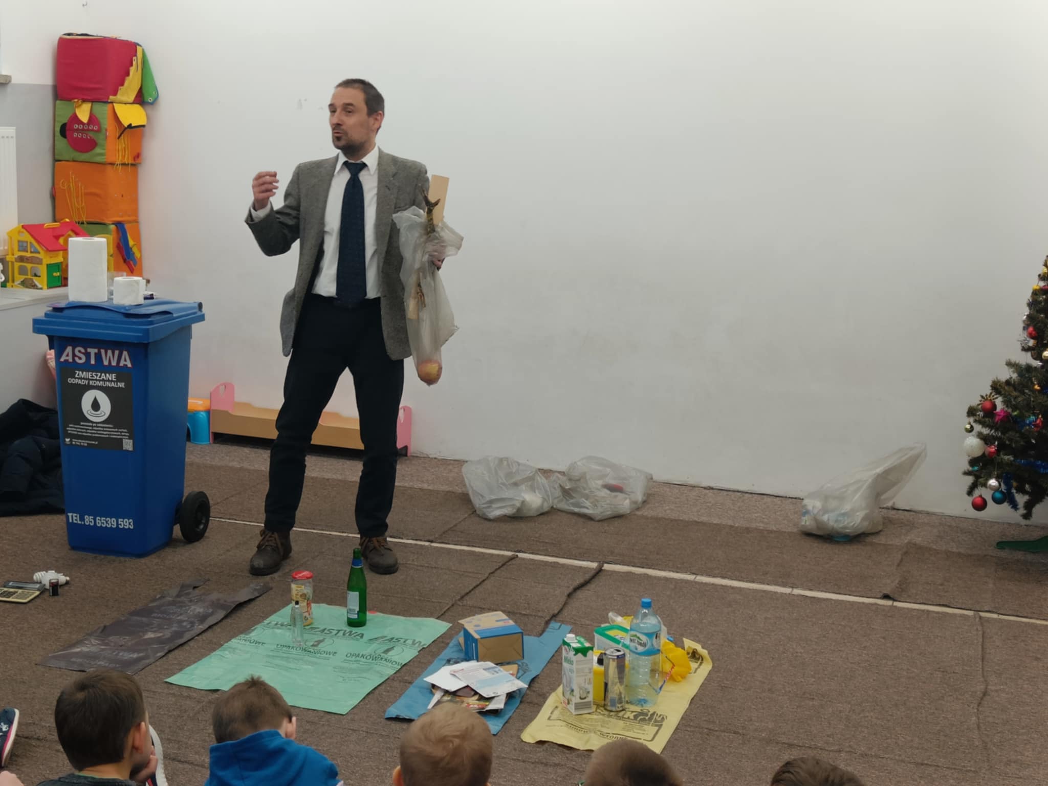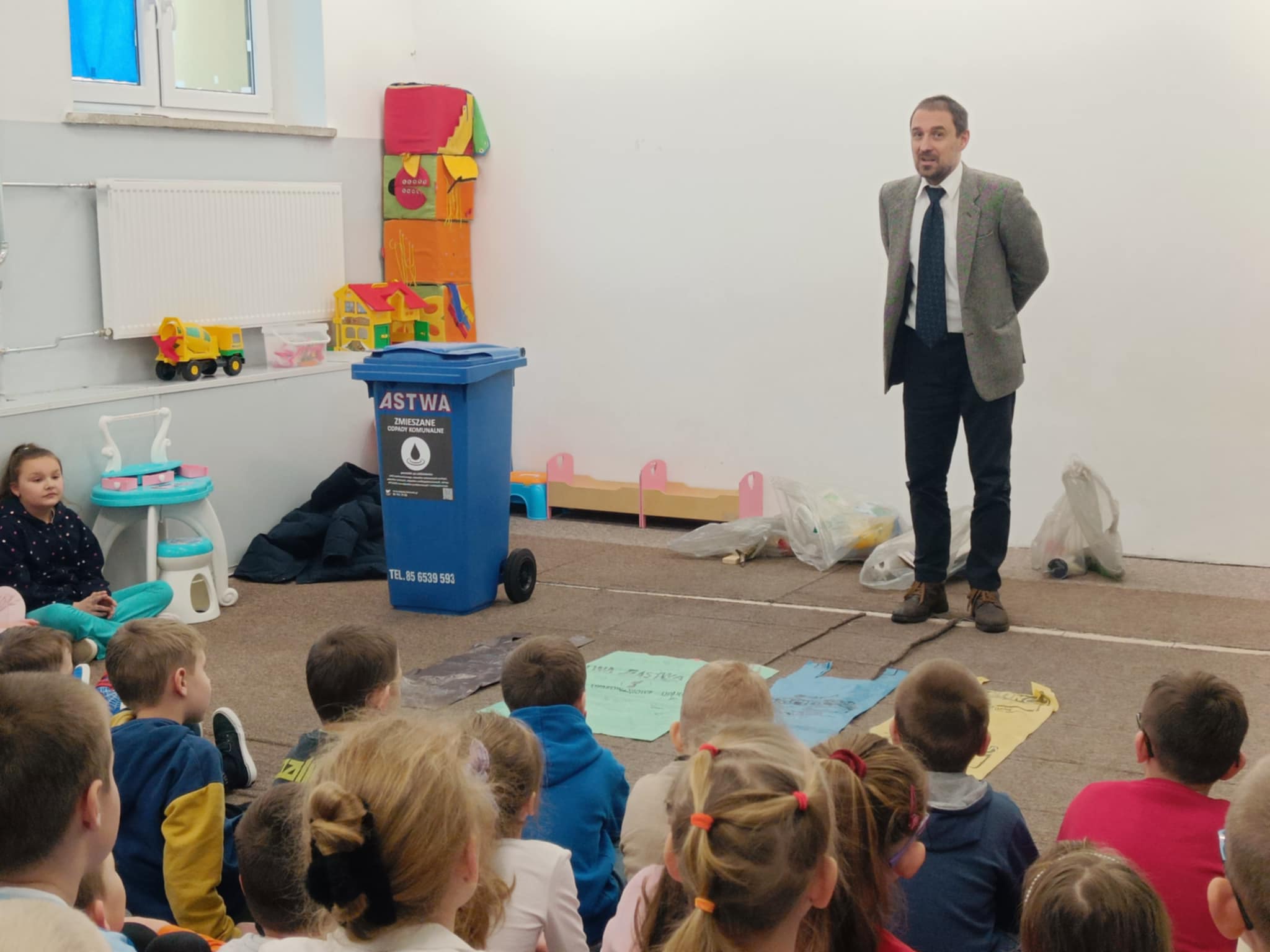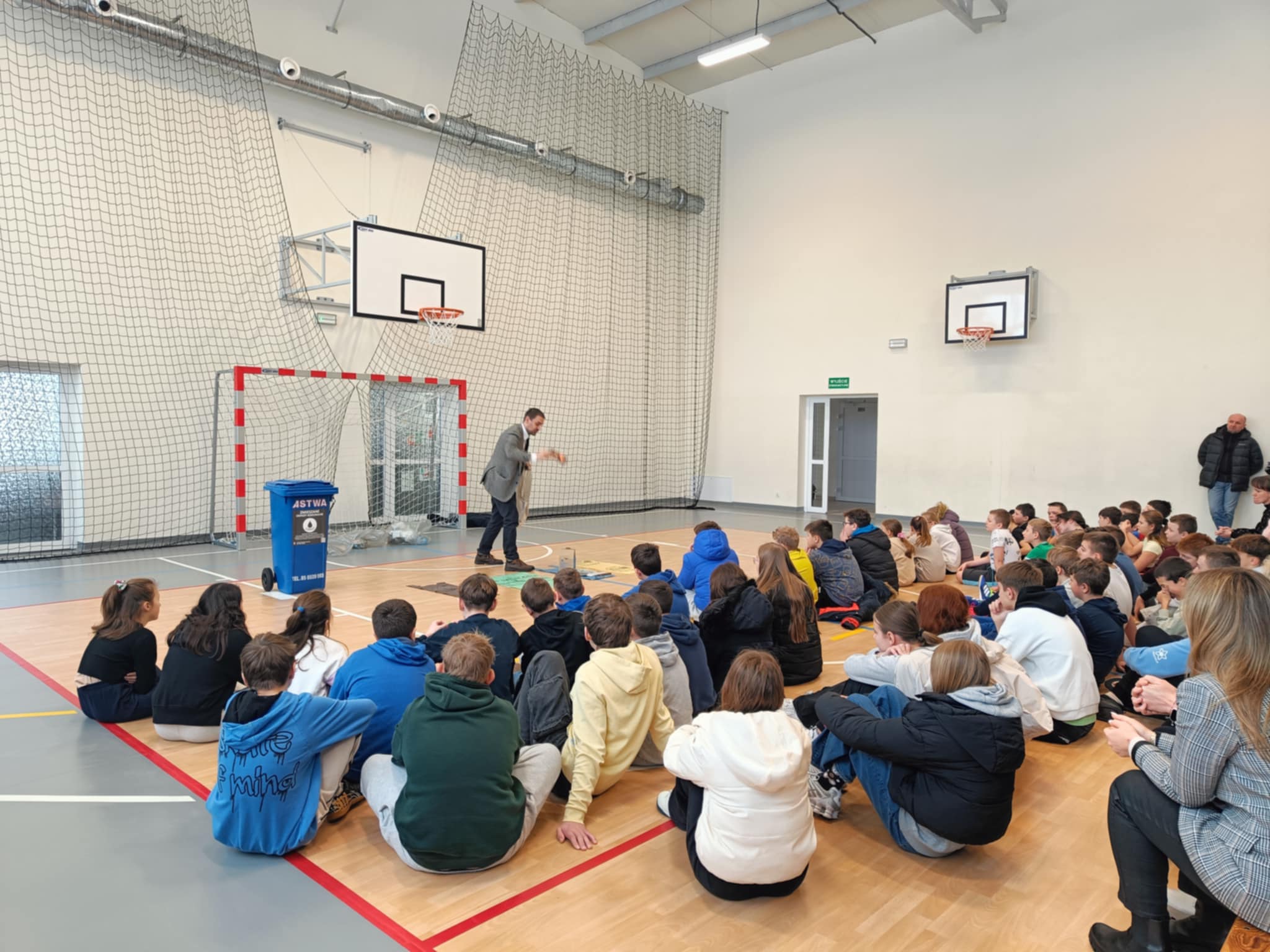 W dniu 16.01.2026. w Szkołach Podstawowych w Topczewie i Wyszkach odbyły się zajęcia edukacyjne dotyczącej segregacji odpadów. Uczniowie Szkół Podstawowych, miały możliwość uczestniczenia w warsztatach na temat segregacji odpadów. Uczniowie dowiedzieli się, jak prawidłowo segregować odpady, co to takiego recykling oraz w jaki sposób możemy ponownie wykorzystywać wytworzone odpady. Spotkanie poprowadził Pan Artur Łuniewski przedstawiciel Przedsiębiorstwa Usługowo- Asenizacyjnego „ASTWA” Sp. z o.o. z Białegostoku